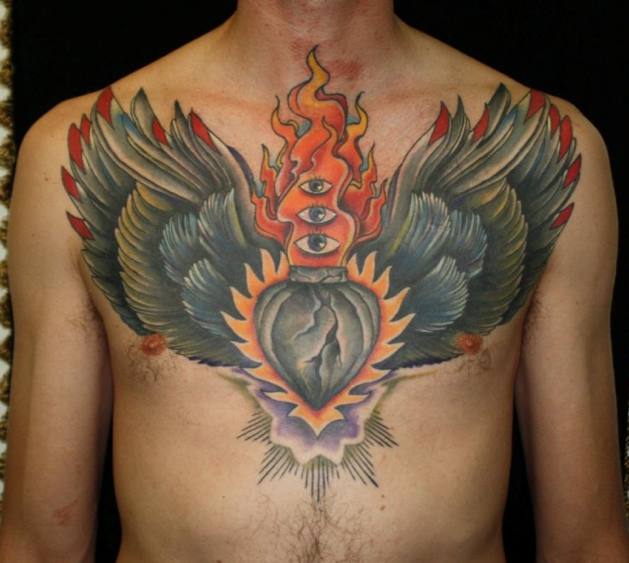 Flames Tattoo On Chest: Chest tattoos are common worldwide.